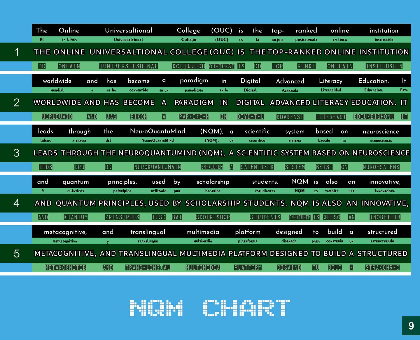 Comencemos con los primeros tres bloques de la página nueve de tu revista Learning From Internet for Lifelong Learning, número 1: The OUC